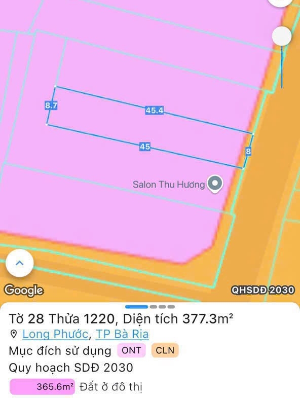 📐 Diện tích: 8 x 45 = 377m², có sẵn 80m² thổ cư, đất nở hậu 8,7m cực đẹp – phong thủy tốt!